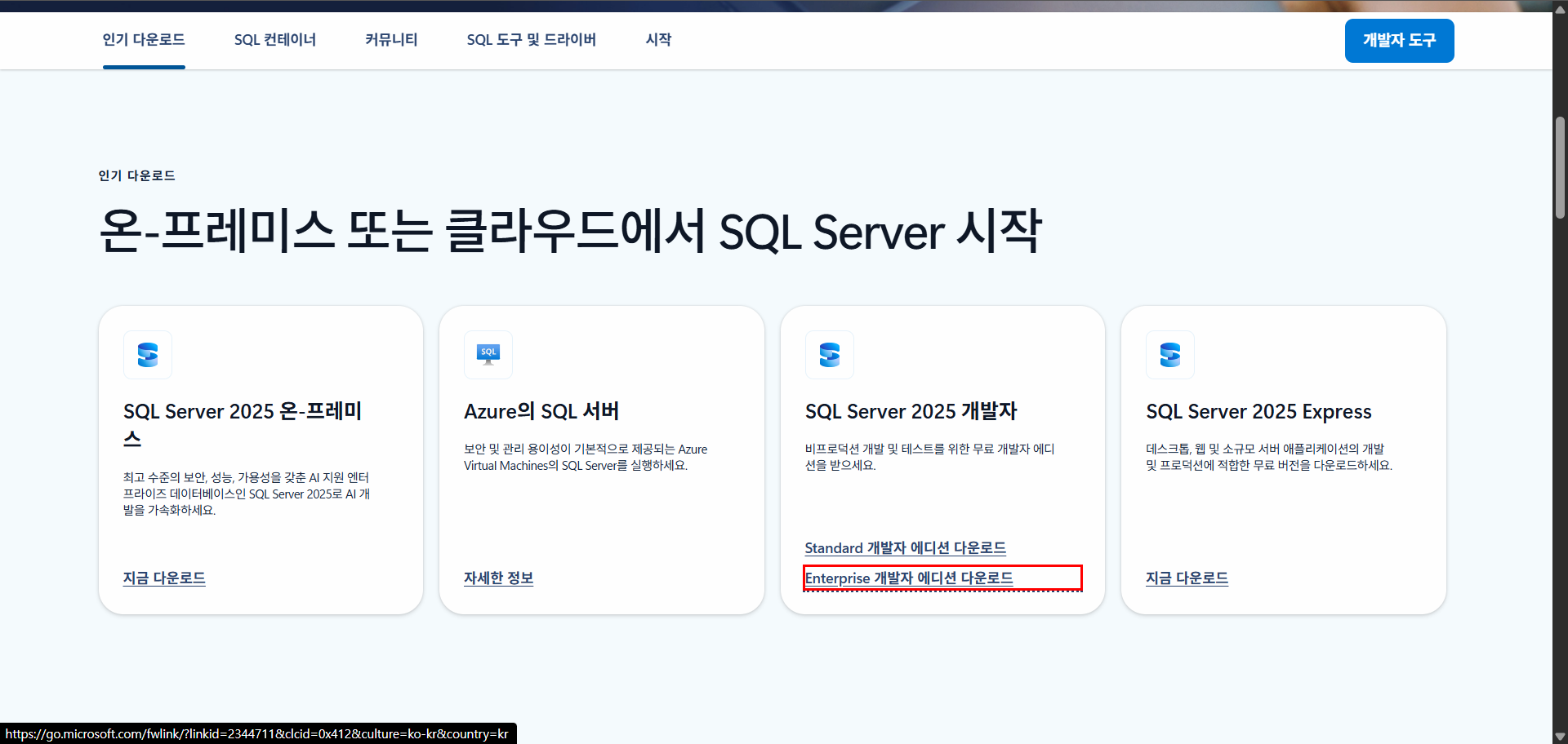 https://www.microsoft.com/ko-kr/sql-server/sql-server-downloads