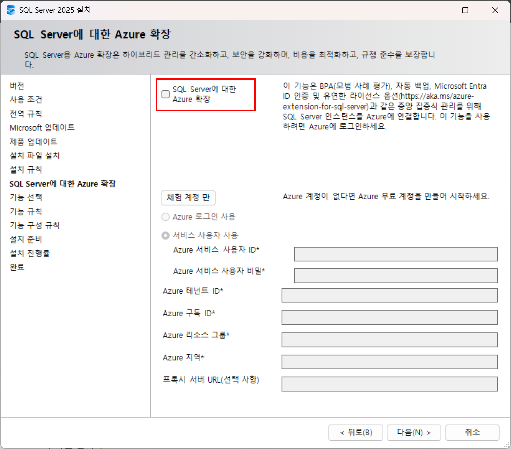 Azure와는 연동하지 않음