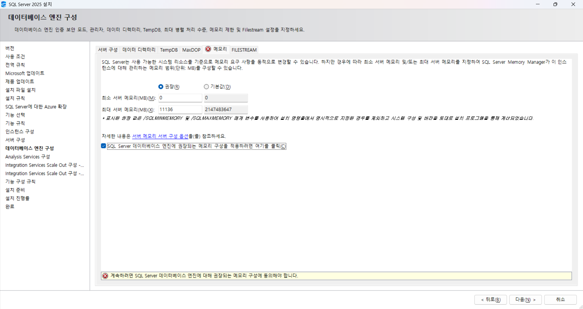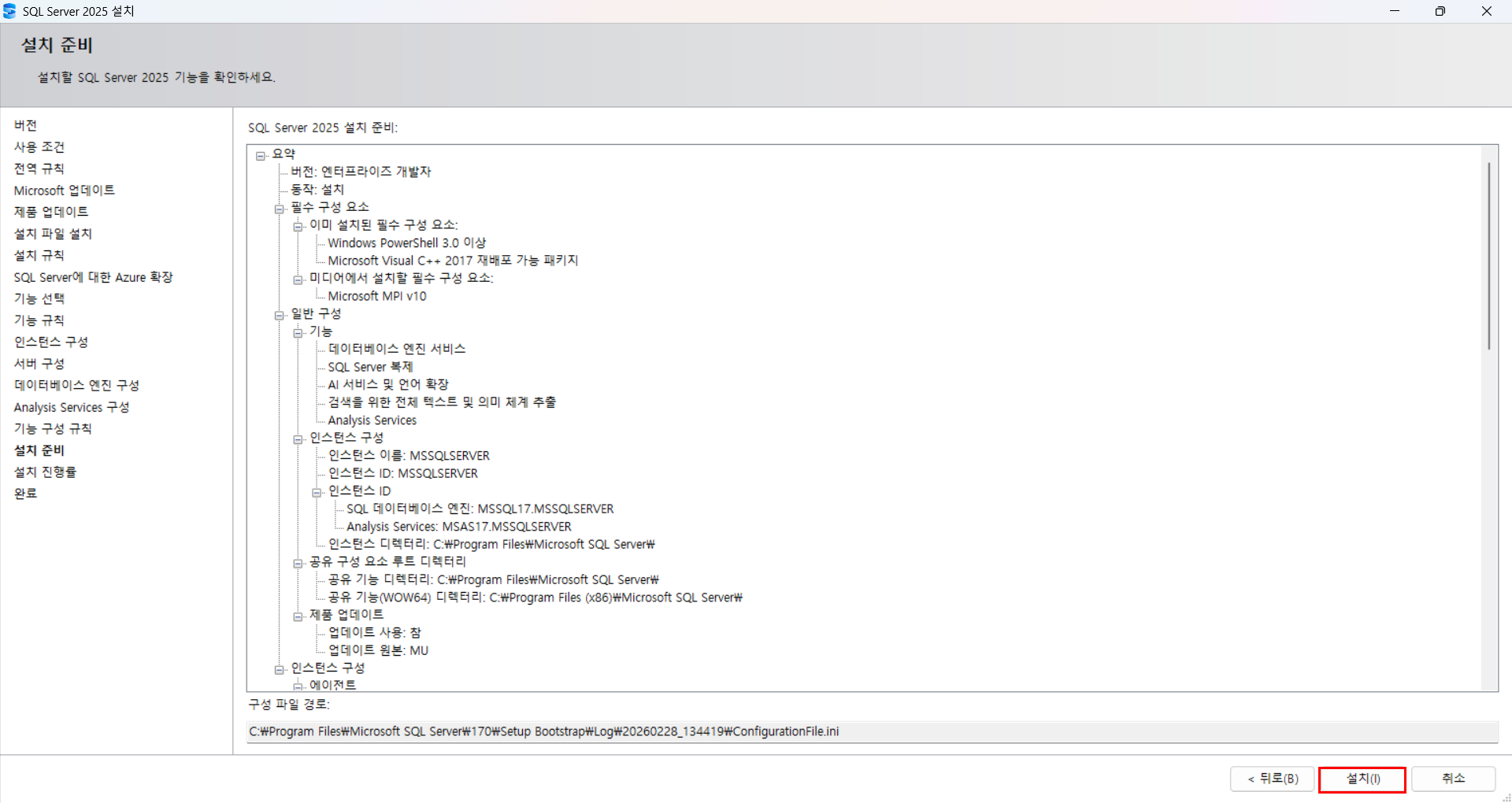 구성 정보 다시 한 번 확인 후 설치 진행