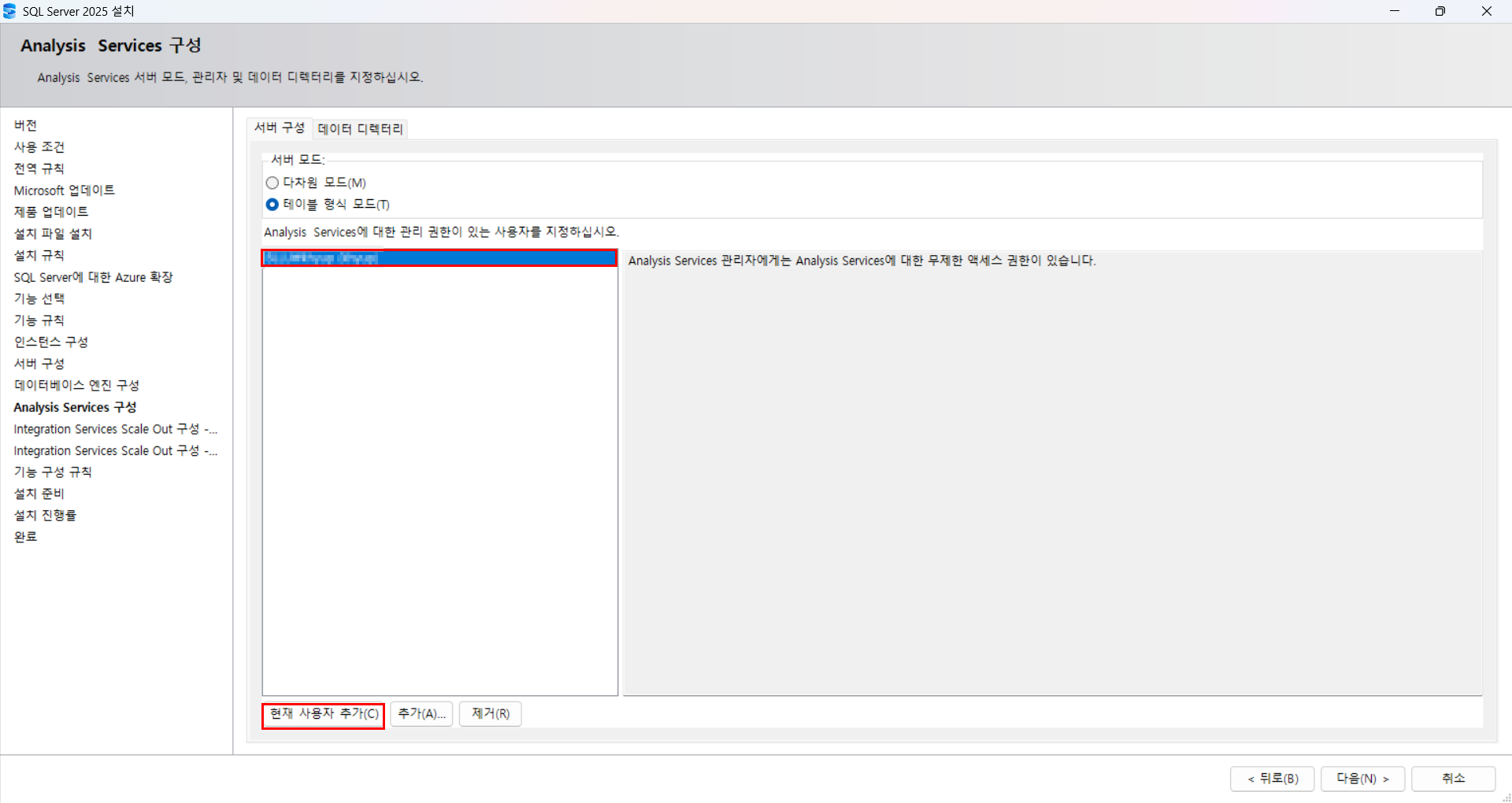 Analysis Services 설정